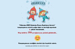 “AYAKLARIM SICACIK” kampanyamızı sizlerin yoğun ilgisi ve desteği sayesinde bugün tamamladık. “Ayaklarım Sıcacık” kampanyasında 229 çocuğumuzun yüzleri gülüyor, ayakları sıcacık. Siz değerli bağışçılarımıza kampanyamıza gösterdiği