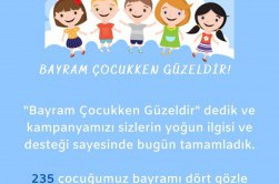 “Bayram Çocukken Güzeldir” dedik ve kampanyamızı sizlerin yoğun ilgisi ve desteği sayesinde bugün tamamladık. Değerli bağışçılarımıza kampanyamıza gösterdiği ilgi ve